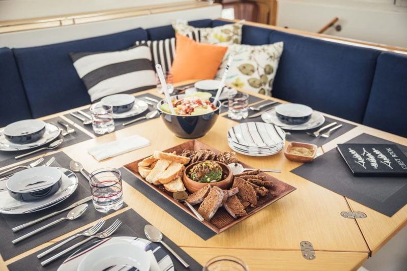 All catering and alcoholic beverages are optional add-ons to the reservation price. We have a selection of local ‘boat-friendly’ catering companies who would be happy to help! Self catering is available as well at a cost of $50 including utensils, dinnerware and cleanup.